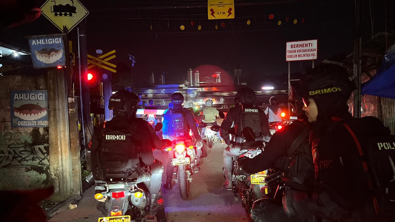 Bekasi – Personel Batalyon D Pelopor Satuan Brimob melaksanakan patroli rayonisasi dalam rangka mengantisipasi potensi gangguan kamtibmas, khususnya tawuran remaja dan aksi balap liar di wilayah Kabupaten Bekasi.