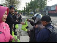 Personel Batalyon D Pelopor Bersama Bhayangkari Bagikan Takjil kepada Masyarakat di Cikarang Pusat