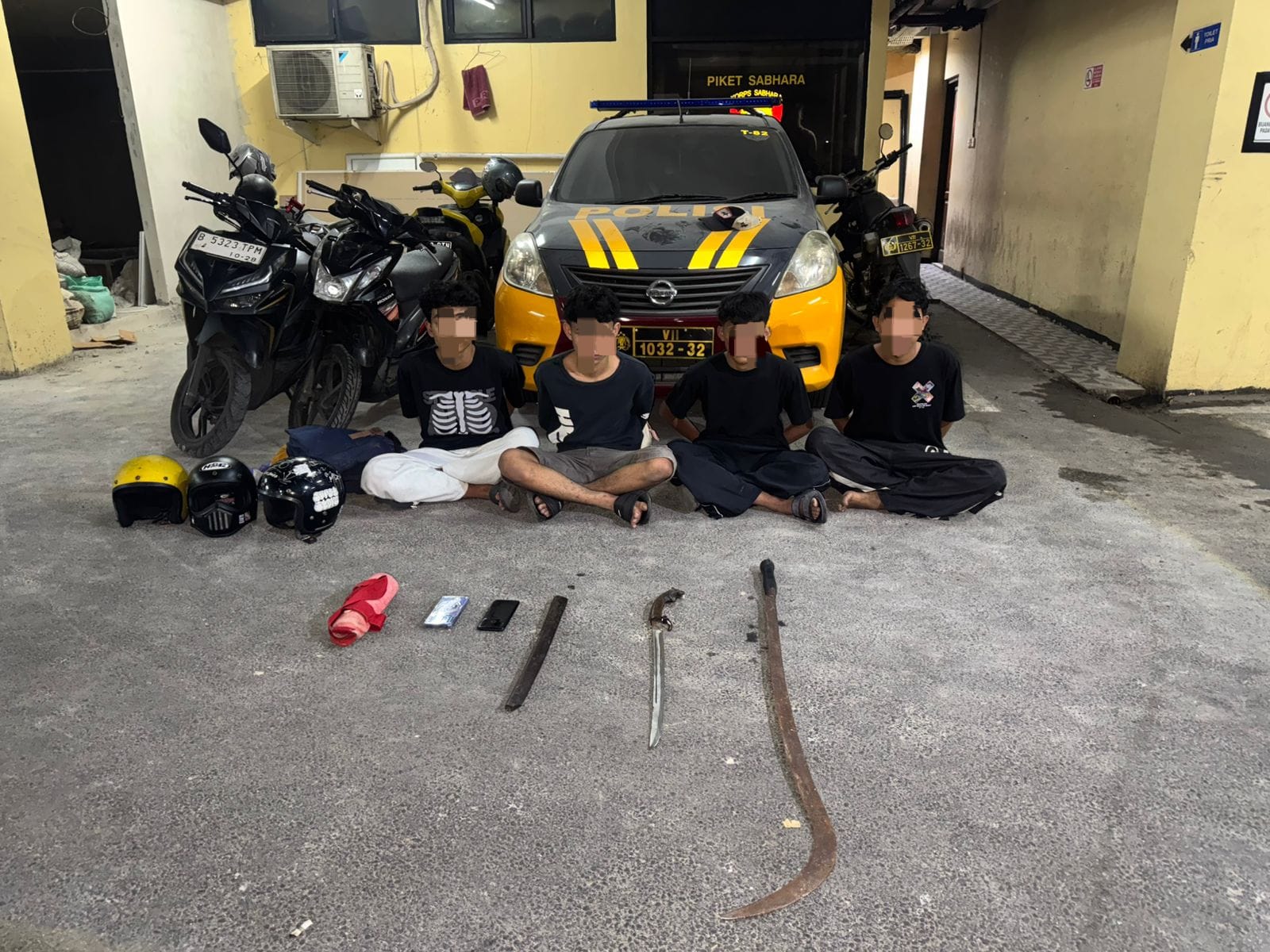 Aksi cepat petugas bermula saat tim patroli melintas dan melihat sekumpulan pemuda yang sedang berkumpul di lokasi. Begitu menyadari kehadiran patroli, para pemuda tersebut langsung melarikan diri, sehingga menimbulkan kecurigaan petugas. Tim patroli segera melakukan pengejaran dan berhasil mengamankan para pelaku beserta barang bukti berupa senjata tajam.