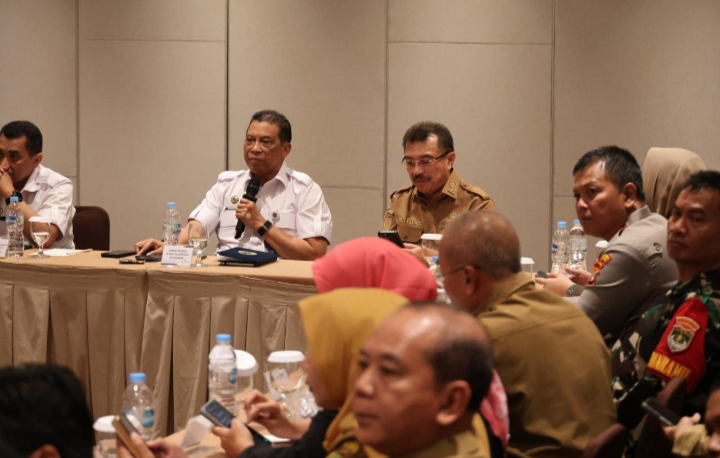 Rapat dipimpin oleh Deputi Bidang Pemantauan dan Pengawasan Badan Gizi Nasional Mayjend purn TNI Dadang Hendrayuda dan dihadiri oleh unsur Forkopimda serta dinas terkait.