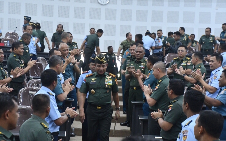 Jakarta – Panglima TNI Jenderal Agus Subiyanto memberikan kuliah umum kepada 111 Perwira Siswa (Pasis) Dikreg LIV Sesko TNI TA 2025 yang terdiri dari 48 Pasis TNI AD, 33 Pasis TNI AL, dan 30 Pasis TNI AU, bertempat di Graha Widya Adibrata, Sesko TNI, Bandung, Jawa Barat, Rabu (26/11/2025). Pembekalan ini menjadi momentum penting untuk memperkuat wawasan strategis, kepemimpinan, serta karakter para calon pemimpin tertinggi TNI.